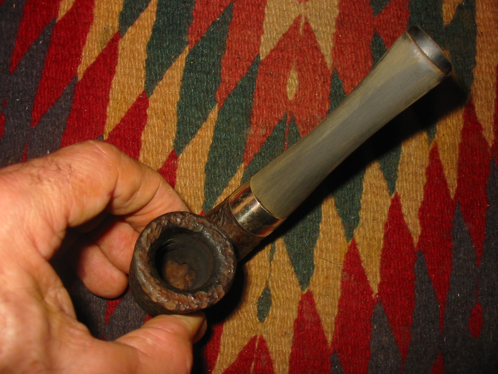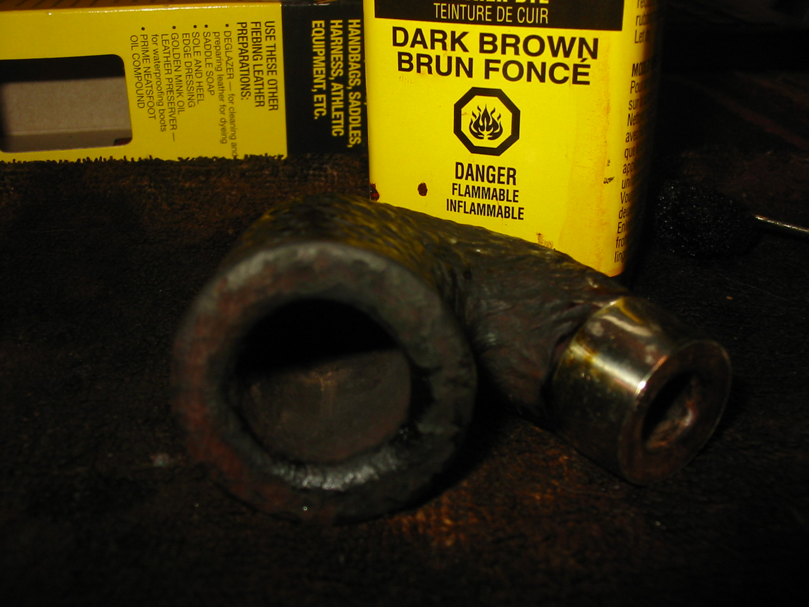 After rusticating the rim I restained it with a dark brown aniline stain. I applied the stain, flamed it and repeated the process until the coverage was even across the rim. I stained the bowl with the dark brown stain as well and flamed it.