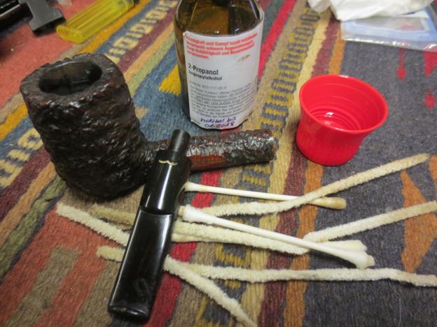 I worked on the inside of the cap and the rim with 0000 steel wool to remove the build up and tars. I worked on that until the surface of the inside shined and the rim was clean. I then polished the silver with a silver cloth to bring back some of the shine to the bling. The next three photos show that process. (You might have the impression from the photos that I bounced back and forth between the stem and the bowl in this refurbishing. While it appears that way in the photos it actually happened over the period of several days and hours. Each time I set the pipe aside to go and do something else I would come back and pick up at whatever point struck my fancy at the moment.)
