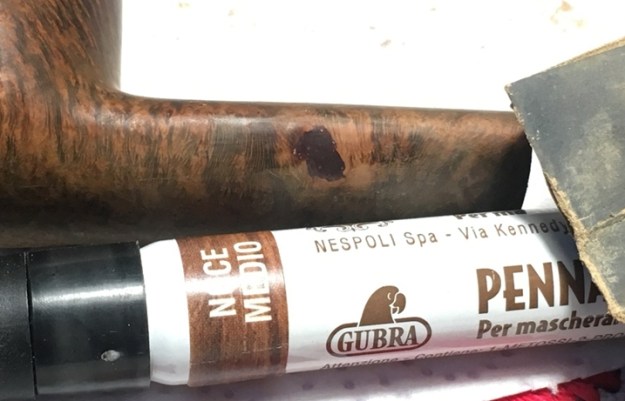 After applying the Tripoli, I give the stummel a gentle wipe with a cotton pad wetted with alcohol. This lightens the hue a bit and helps blend the new dye.