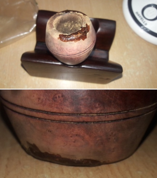I decided I needed a change of pace in my restoration/clean up work. I went through my pipes waiting in the queue and chose pone from a group of four pipes that were given to us by a woman in Columbus, Ohio, USA. It had belonged to her Grandfather who lived from 1882 to 1977. There were four pipes that she sent us from his estate – the metal bowled apple, a cased meerschaum with a broken shank and an amber stem, a Whitehall rusticated apple and a BBB Glokar Fraternity Pipe.