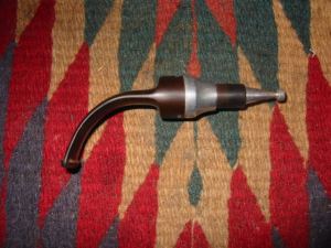 The shank was really a mess. I could not fit a standard pipe cleaner through it and had to use a dental pick to open it up. Because it is a full bent a drill bit was unworkable past about the middle of the shank. I have a dental pick that have I straightened out a bit and it worked like a champ. The pipe had a sump in it like the Peterson system pipes and it was absolutely jammed packed with tars. The stem would not even fit in the shank it was so full of junk. I used a small brass battery terminal brush to work over the inside of the shank and the sump area once I had opened it up. I blew air through to make sure it was open. I used pipe cleaners and q-tips to clean it up. I kept at it until the airway and shank were clean. Once I finished with the interior of the pipe I put the bowl in an alcohol bath over night. I have found that this takes off all the grime that is rubbed into the finish and any remaining interior grime.