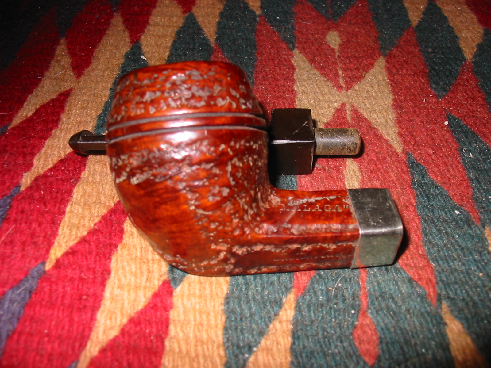 The pipe was dirty. The bowl was badly caked – meaning that the cake was very crumbly and uneven. The bowl was out of round as can be seen in the photo below. I would need to ream it out completely to reshape the bowl. The finish was dirty in all of the worm trail carving that is found in these old rustic pipes. It looks a lot like a Mincer Custombilt but I am not sure. The rim surface is tarry with build up and the front inner edge of the bowl is burned. The shank looks good in these photos but there is a divot out of the briar on the left side where it will meet the stem. It did not have a stem when I picked it up on Ebay. I will need to make some decisions about what to do with the new stem and the match at the shank.