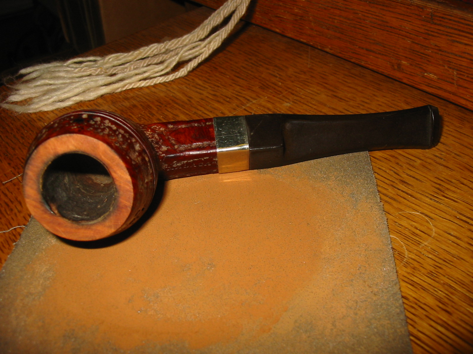 I then sanded the stem with 220 grit sandpaper to remove more of the oxidation and also the scratches left behind by the emery paper. The next series of three photos show the stem after sanding with the sandpaper.