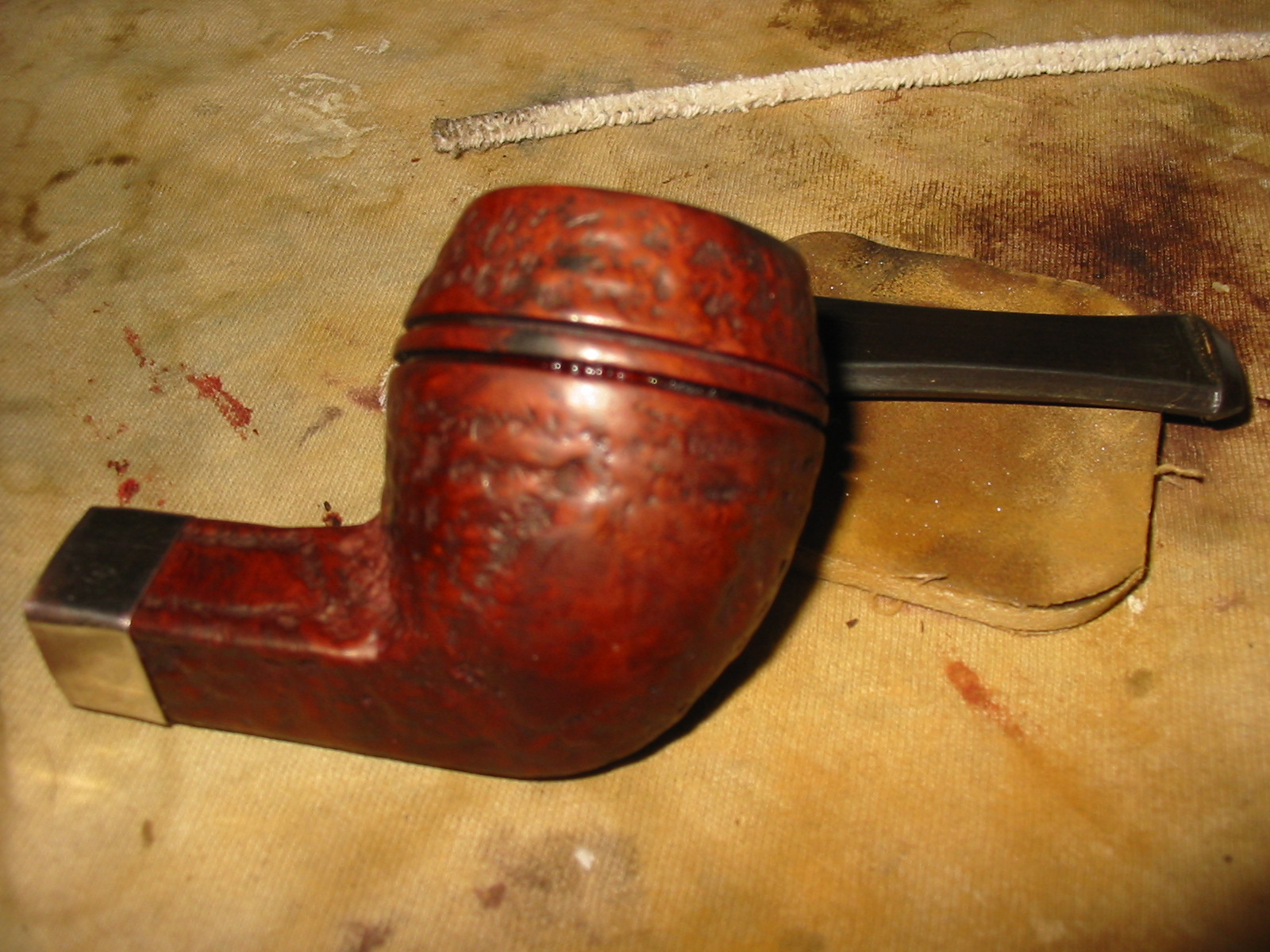 Once the stain was dry I hand buffed it with a shoe brush to see if I needed to add any more stain to some of the spots on the bowl and rim (Photo 1). The next three photos show the buffed bowl and the finished colour. The coverage was good so I buffed it by hand and then went back to work on the stem.