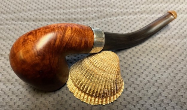 Jeff had cleaned up the pipe with his usual thoroughness. He reamed the pipe with a PipNet Pipe Reamer and cleaned up the remnants with a Savinelli Fitsall Pipe Knife. He scrubbed the bowl with undiluted Murphy’s Oil Soap with a tooth brush. He rinsed it under running warm water to remove the soap and grime. He cleaned out the inside of the shank and the airway in the stem with alcohol, cotton swabs and pipe cleaners. He soaked the stem in Before & After Deoxidizer and rinsed it off with warm water. Somewhere along the way as it sat here it picked up some stickiness on the top of the stem that looks a lot like what is left behind by a gummed label. I took photos of the pipe 3 years later when I finally got around to working on it. As you can see it is another beautiful looking pipe.