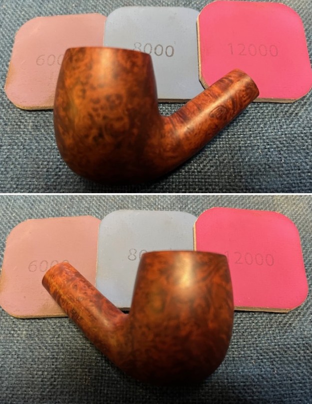 I polished the briar with micromesh sanding pads – wet sanding with 1500-12000 grit pads. I wiped the bowl down after each pad with a damp cloth.