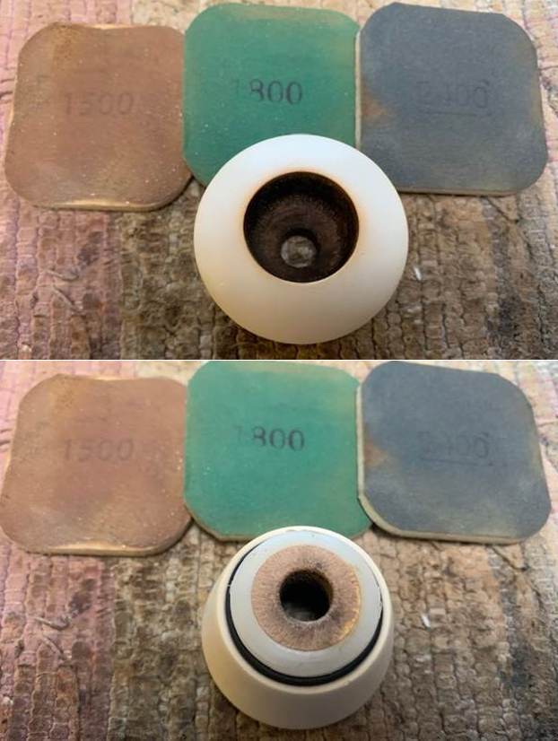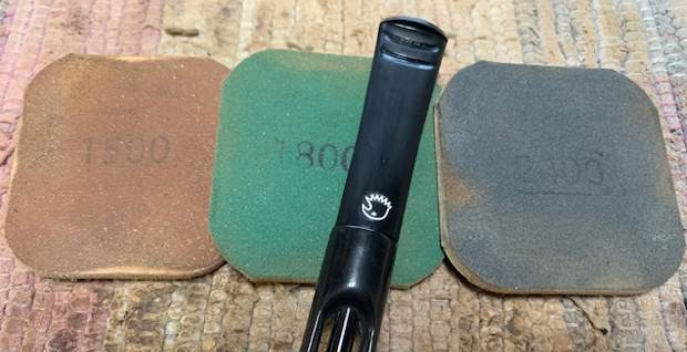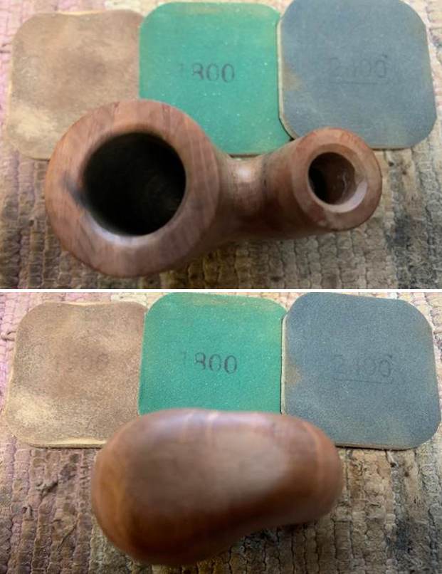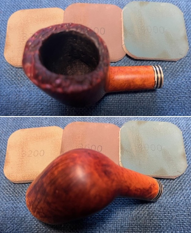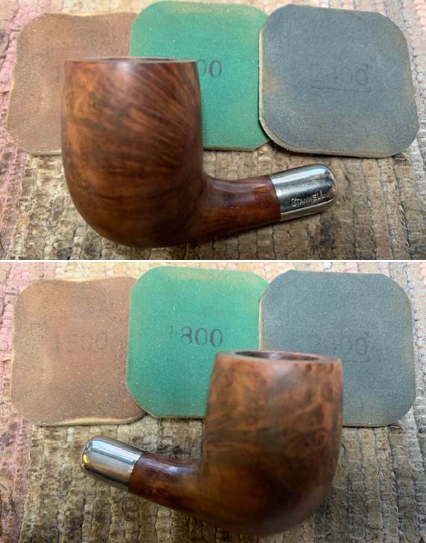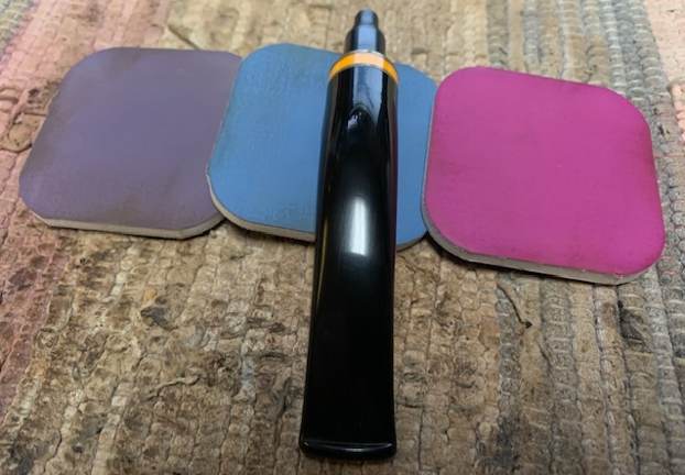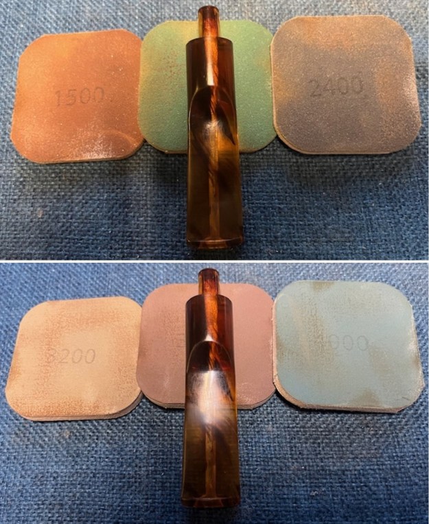 I finished working on the stem by sanding it with 32-3500 grit 2×2 inch sanding pads to smooth out the repair and to remove the tooth chatter. The pipe stem was looking very good.