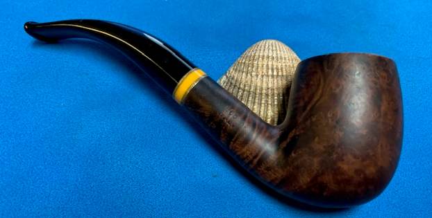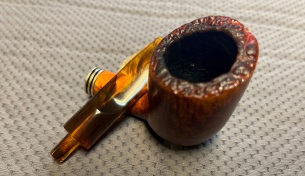 This rusticated Velani Caprice 75 Bent Billiard with a fancy saddle stem is a great looking pipe now that it has been restored and the tenon and stem repaired. The briar around the bowl is clean and the rustication really came alive. The rich brown stains of the rustication took on a sense of depth with the polishing and waxing. The grain really popped. I put the acrylic stem back on the bowl and carefully buffed the pipe with Blue Diamond on the buffing wheel using a light touch on the briar. I gave the bowl and the stem multiple coats of carnauba wax on the buffing wheel. I buffed the pipe with a clean buffing pad to raise the shine. I hand buffed the pipe with a microfiber cloth to deepen the shine. The finished Velani Caprice Rusticated Bent Billiard is a beauty and feels in the hand and looks very good. Give the finished pipe a look in the photos below. The dimensions of the pipe are Length: 5 ½ inches, Height: 2 inches, Outside diameter of the bowl: 1 ¼ inches, Chamber diameter: ¾ of an inch. The weight of the pipe is 1.76 ounces/49 grams. Thanks for reading this blog and my reflections on the pipe while I worked on it. There are many more to come!