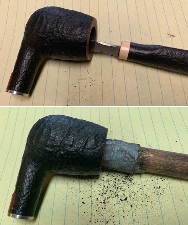 I went through my bag of tenons and found one that was the right fit for the shank. I used a tenon that was made for the Jobey link system. I removed the ridge around the tenon that was made for the Jobey stem and would inset. I used my Dremel to remove that ridge as it was not necessary for a regular tenon.