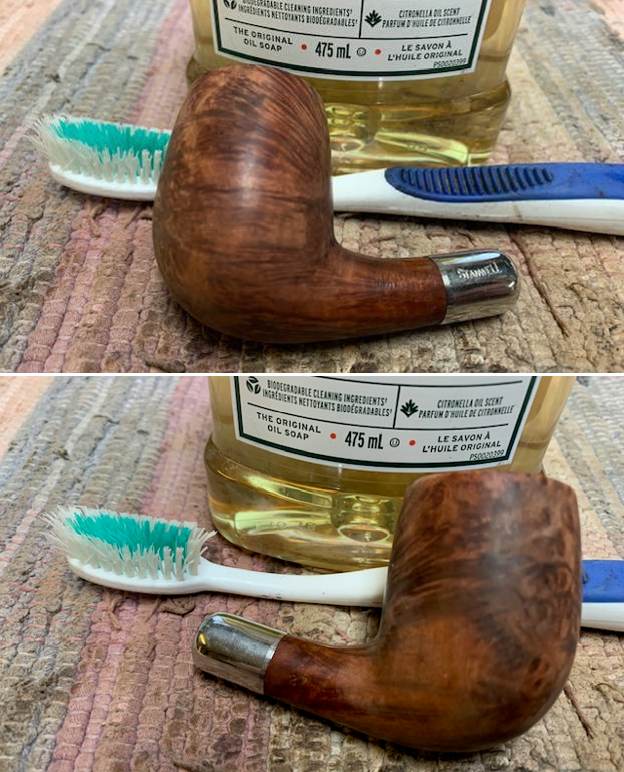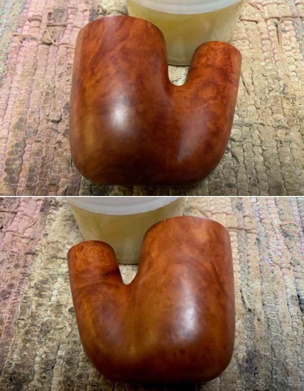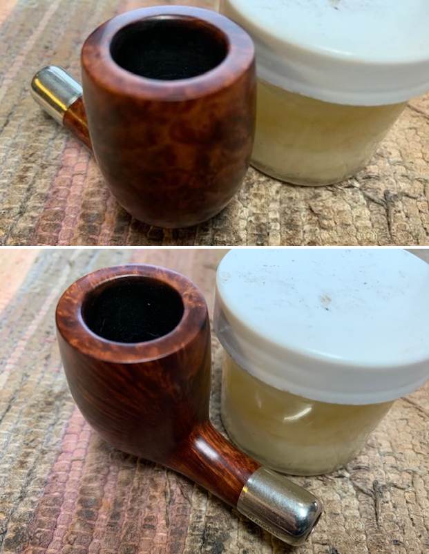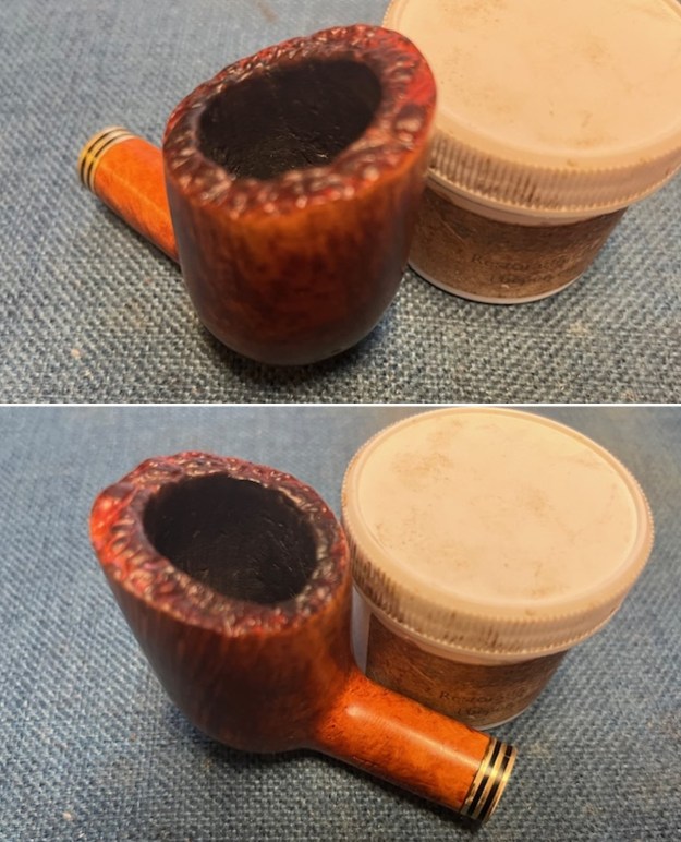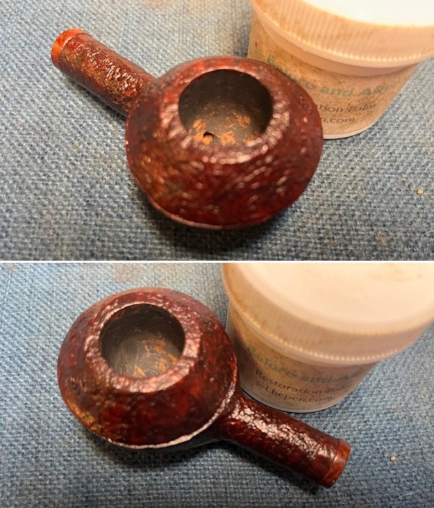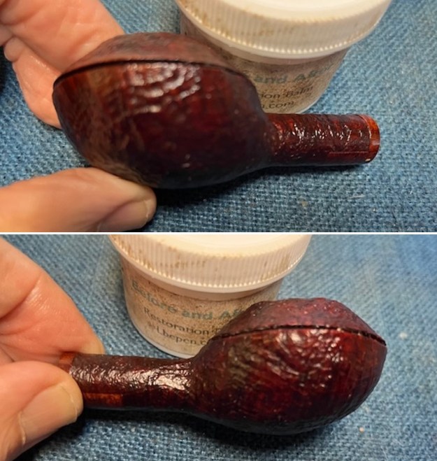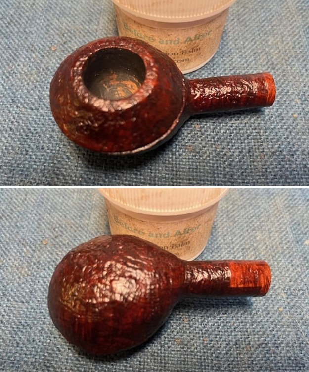 I rubbed the bowl and shank down with Before & After Restoration Balm. I worked it into the surface of the bowl sides and shank with my fingertips to clean, enliven and protect the briar. I let the balm sit for a little while and then buffed with a cotton cloth to raise the shine. The Balm did its magic and the grain stood out.