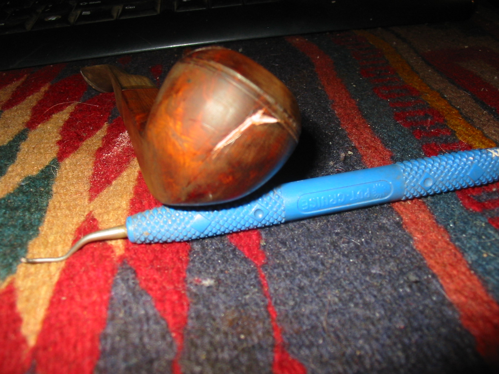 The next three photos show the stamping on the shank and the angle of the cut of portion. It actually cut off the last letter or letters of Aarhus (pipe brand) and the E of France. The third photo shows the crack on the left side of the shank. There was a matching crack on the right side as well.