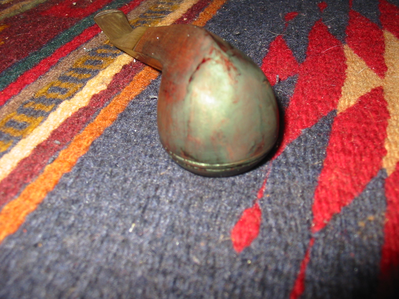 The next two photos show the newly banded shank. In the second photo you can also see the white putty fill about half way down the side of the bowl.