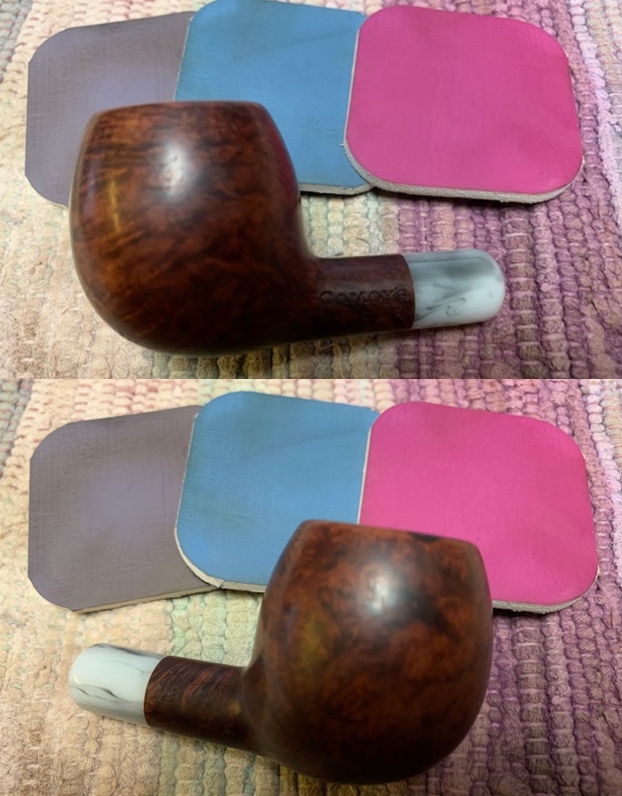 These pictures show the progress with the final picture a few hours after clearing the excess charcoal. I will need to let the pipe sit now for 5 to 7 days for the bowl coating to fully cure, which will not be a problem!