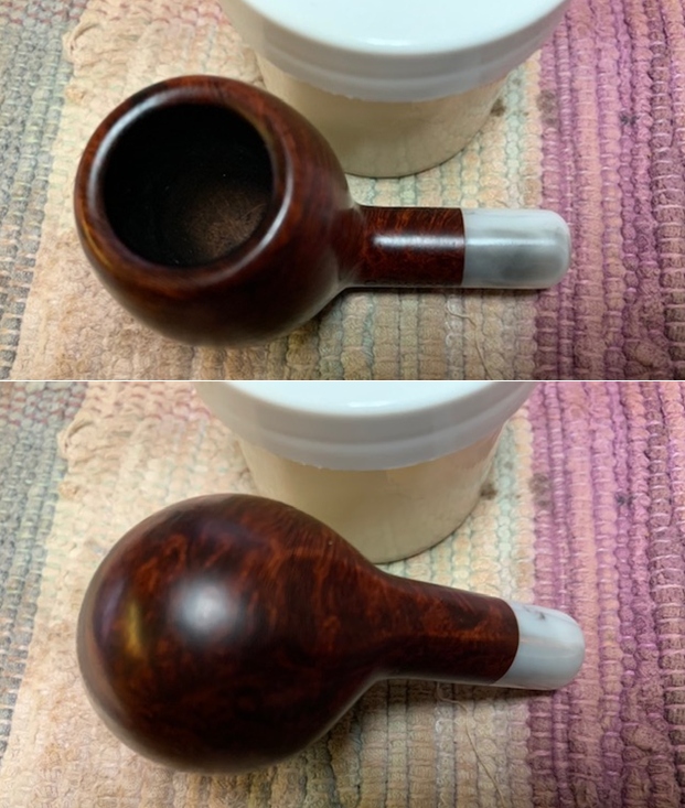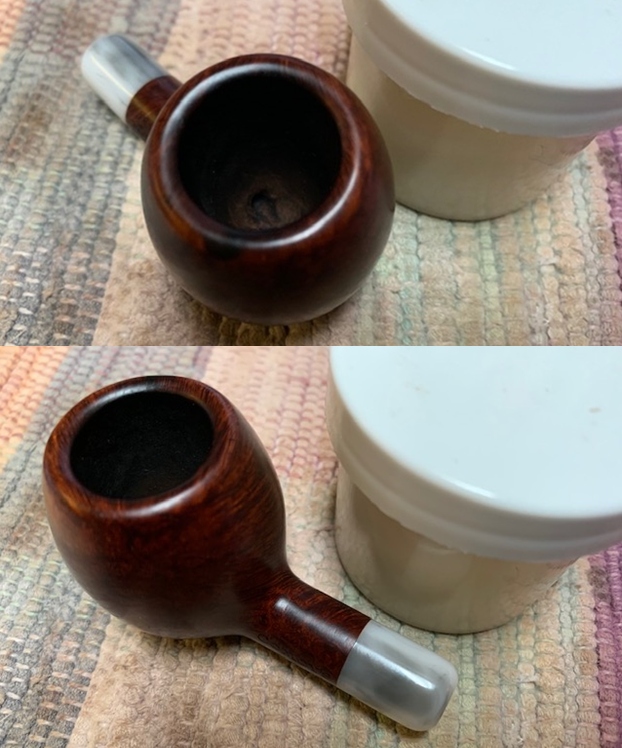 One last need on the check-list before recommissioning this 56-year-old Dunhill. After this many years of active service, heat fissures had developed in the chamber. I want to coat the chamber with a mixture that helps protect the briar while at the same time provides a temporary foundation for the cake to develop which will provide the long-term protection of the chamber briar. I have heard, and repeat here, proper cake depth to be maintained is about the thickness of a US dime. It would have been easier to do this before polishing the stummel, but I forgot until now. No problem.