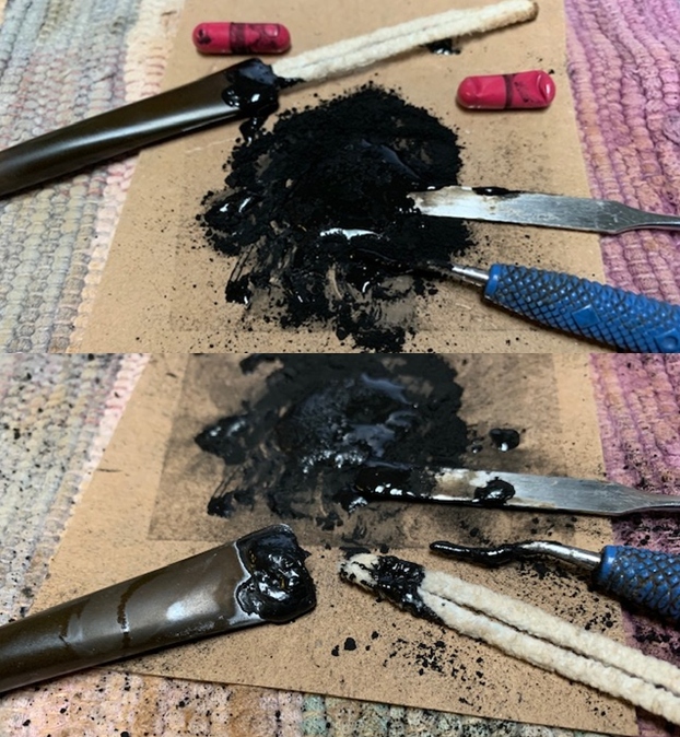 In the past, I’ve used a coating mixture of activated charcoal dust and sour cream (here on Reborn Pipes) – which works wonderfully and leaves no taste or smell – it is inert. Since I don’t see any sour cream in the refrigerator, I decide to use the method that Charles Lemon uses which he described here on Dad’s Pipes using maple syrup and activated charcoal as the main ingredients. Since we do not have maple syrup in Bulgaria (bummer!), Charles assured me after an emailed question, that honey, plentiful in Bulgaria, would serve well as a substitute. Charles’ directions are straight forward, which I follow: