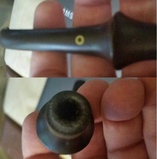 I took a photo of the top of the bowl to capture the damage to the rim top and the cracks in the bowl radiating down the sides. I took photos of the shank extension and the horn stem on the end to show its condition as well. The shank extension and stem were in decent condition so that was a blessing to be thankful for at this point in the process.