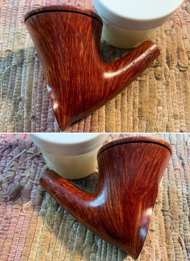 Unique — England, unknown if also made in France: smooth freehand shapes, mostly large/oversized pipes. Possible made by the Jameson brothers. –TH