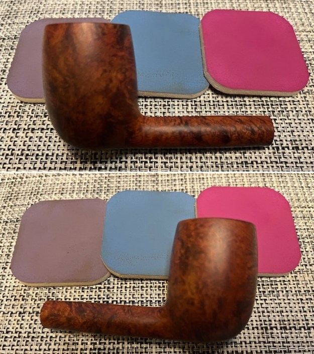 Jeff had done an amazing cleanup of the pipe. He reamed the cake with a PipNet reamer and cleaned up that with a Savinelli Fitsall Pipe Knife. He scrubbed the internals of the bowl and stem with alcohol, cotton swabs, shank brushes and pipe cleaners. He scrubbed the externals with undiluted Murphy’s Oil Soap and rinsed the bowl off with running water. He soaked the stem in Briarville’s Pipe stem Deoxidizer and once it had soaked, rinsed it off with warm water to remove the residual solution. He dried it off and rubbed it down with Soft Scrub to remove any oxidation that was still on the stem. The pipe looked very good when I received it.