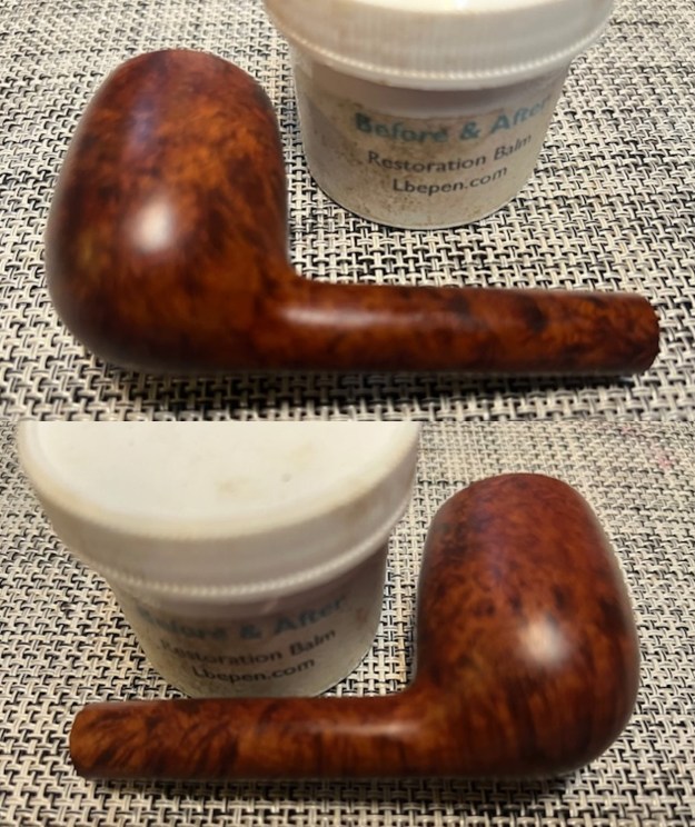 I rubbed the briar down with Before & After Restoration Balm. I worked it into the briar with my fingertips. The product works to clean, enliven and preserve the briar. I let it sit for 10 minutes then I buffed it with a cotton cloth to deepen the shine. The briar really comes alive with the balm.