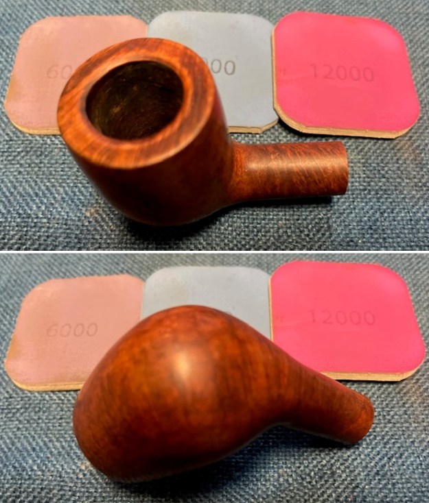 I polished the briar with micromesh sanding pads. I dry sanded it with 1500-12000 grit sanding pads and wiped the bowl down after each pad with a damp cloth. By the final pads the briar really had a shine.
