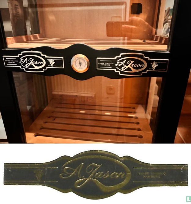 I did some searching on Google and could not find any pipe makers with the name A. I did a search in Washington and Oregon as well as Idaho and Utah all states within reach for Gene to have either visited or ordered a pipe. There was nothing that I could find in terms of a US pipe maker. I did a search on Google for A. Jason tobacco products and came across a cigar label and cigar cutter with the same stamp as the pipe – A. Jason. Further searching took me to a German tobacco supplier called A. Jason-Hanse Hamburg, Germany. They are a small tobacco shop located at Barmbeker Str. 17-19, 22303 Hamburg, Germany that sells cigars, humidors, cigar cutters, pipes and pipe tobacco. They were some pictures of the label on a humidor and a cigar label with the same stamp.