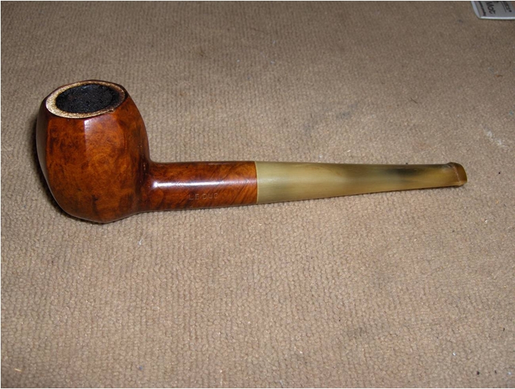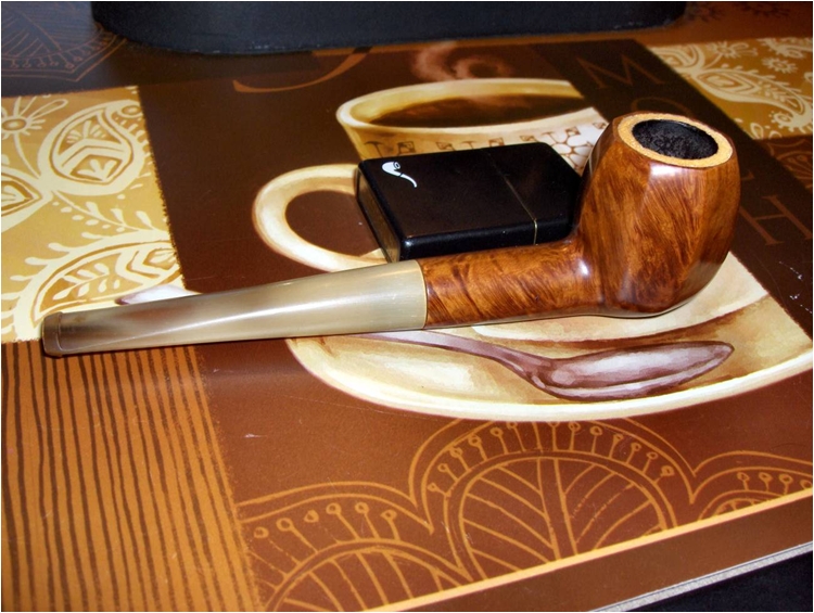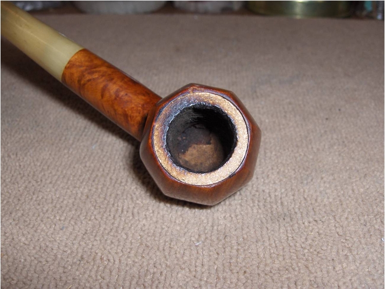 Further narrowing down the period, I strongly feel that this pipe dates to pre 1920. This conclusion is based on the fact that; firstly, the stem and tenon material used is horn and bone respectively which were the preferred material after Amber during this period for making stems as hard rubber/ vulcanite gained prominence during 1920s. Secondly, the round orifice at the stem end was commonly used until 1920s when vulcanite/ hard rubber with elliptical slot end gained prominence subsequently. Thirdly, use of cork lining inside the mortise to firmly seat the bone tenon in to the mortise.