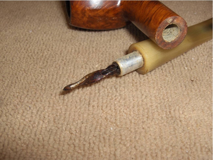 As observed above, the mortise is completely clogged with old oils, tars and ash resulting in a very hard and laborious draw. This was the issue that I addressed next. Using dental tools and fabricated poker, I scraped out the entire gunk from the walls of the mortise taking care that the cork lining is not damaged in the process. I used the drill bit from the Kleen Reem to remove and open up the shank airway. It was a tedious and time consuming work, but well worth the caution and efforts. The heap of crud extracted from the shank confirms the reason for the hard and laborious draw. I ran a few hard and regular pipe cleaners dipped in alcohol through the mortise and airway to remove residual gunk. The mortise is now clean with a much better open and easy draw. I shall continue with the cleaning process when I clean the stummel surface.