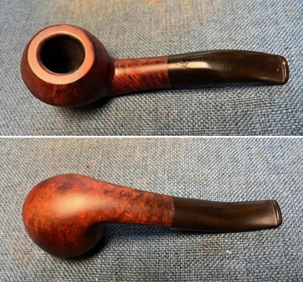 The stamping is very clear and readable in the photo below. It reads as noted above. I removed the stem from the shank and took a photo of the parts to show the parts of the pipe. The finish on the pipe is very worn and tired looking. The signature on the top of the saddle stem is hidden under the grime and debris on the surface.