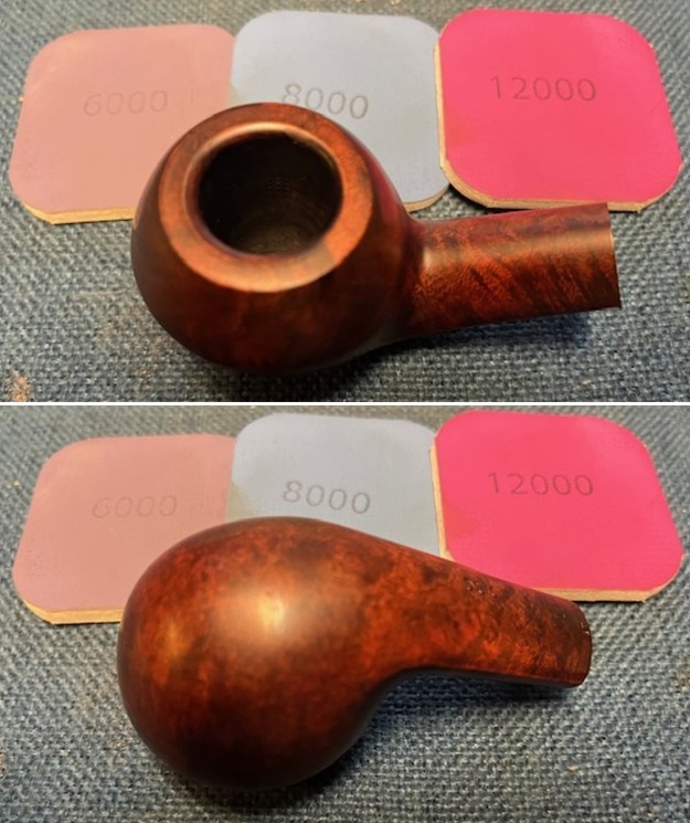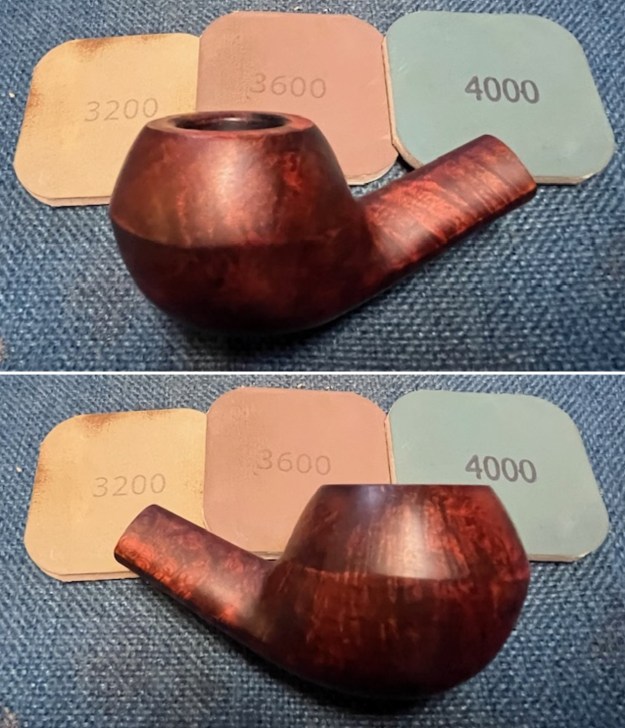 I polished the stem with micromesh sanding pads – wet sanding with 1500-12000 grit sanding pads. I wiped it down after each sanding pad with some Obsidian Oil. I finished polishing it with Before & After Pipe Stem Polish – both Fine and Extra Fine and buffed it off with a cotton cloth.