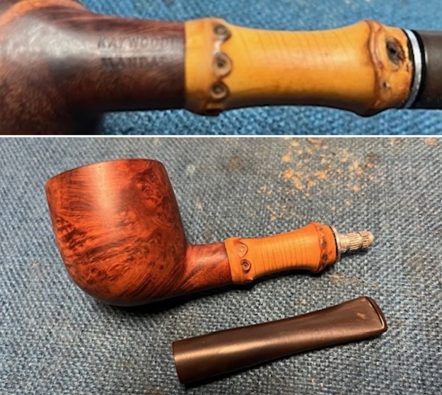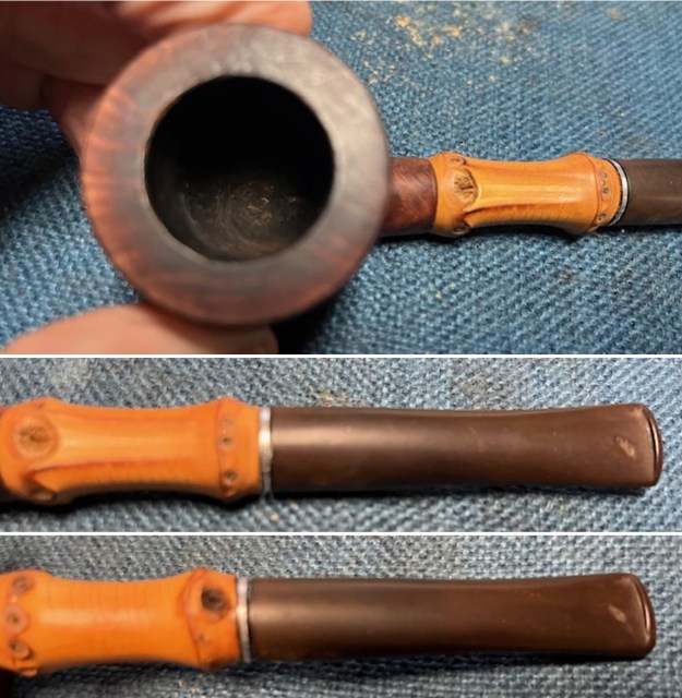 I took photos of the stamping on the top and underside of the shank. You can see that it is stamped as noted above. It is faint and readable. I took the pipe apart and took a photo of the pipe. It is a good looking pipe and has some nice looking grain around the bowl.