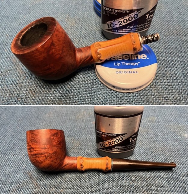 I polished the stem with micromesh sanding pads – wet sanding with 1500-12000 grit sanding pads. I wiped it down after each sanding pad with Obsidian Oil. I polished it with Before & After Pipe Stem Polish – both Fine and Extra Fine.