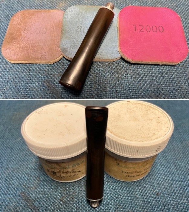 I set the bowl aside and turned my attention to the stem. I sanded the stem with 320-3500 grit 2×2 inch sanding pads and wiped it down with an Obsidian Oil cloth after each sanding pad. The stem began to take on a shine.