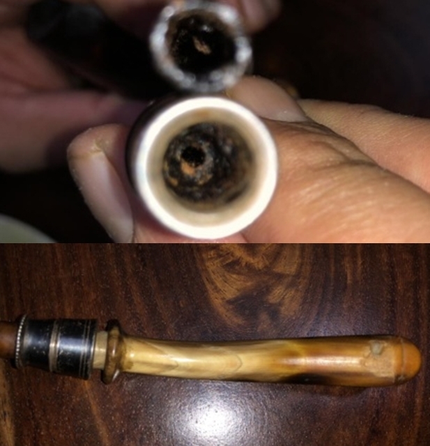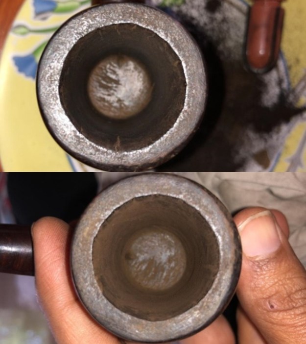 This time around, before commencing the restoration process, I posted the pictures of this pipe on the Tobacco Pipe Restorers group on Facebook as my next project. In addition to input from my mentor, Mr. Steve, I collected a lot of valuable information from all the knowledgeable stalwarts. From all the input that I have gathered, the flat bottom bowl, the stamping, the sterling silver adornments, the bone shank extension and horn stem, I can safely place this piece as being one of the first A Metz pipes from the 1858 era!!!!!