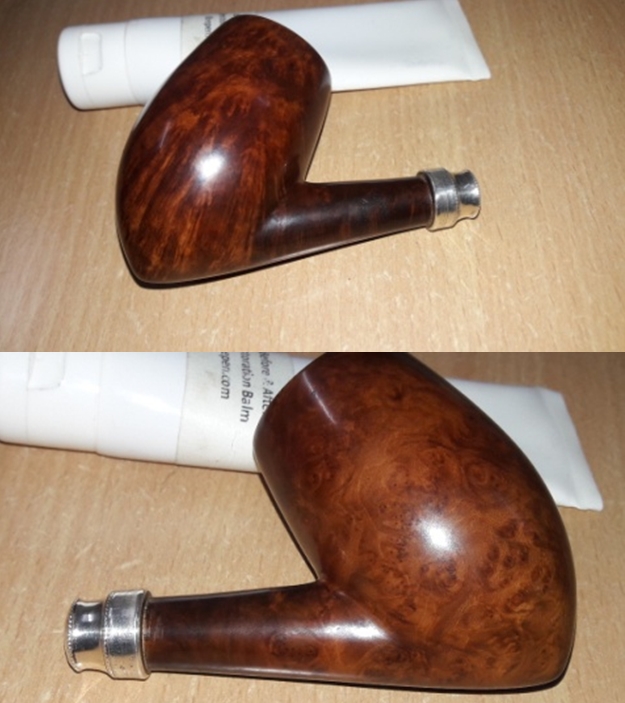 I rubbed a small quantity of “Before and After Restoration Balm” with my fingers deep in to the stummel surface. What this balm does is it revitalizes the briar wood and breathes a new life in to the briar. It’s amazing to see the transformation as the balm works its magic on the briar wood. I further buff it with a horse hair shoe brush.