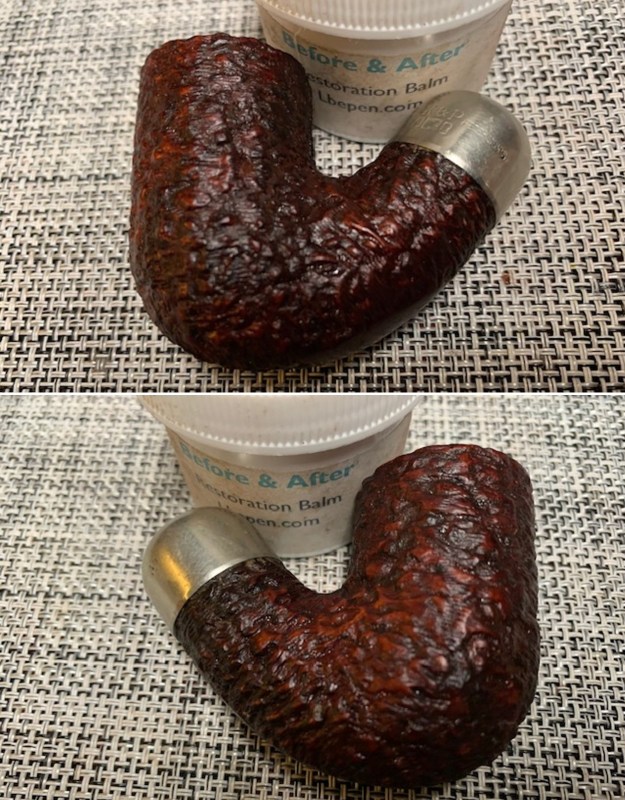 I rubbed the bowl and rim down with Before & After Restoration Balm. I worked it into the surface of the briar with my fingertips to clean, enliven and protect it. I let the balm sit for 10 minutes and then buffed with a cotton cloth to raise the shine. I really like watching the Balm do its magic and bring the briar alive.