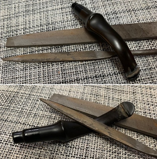 Jeff works to protect and preserve the nomenclature on the shank of the pipes that he works on. He was able to preserve and maintain its condition in the process. I took some photos to show the clarity of the stamping. I have noticed that many restorers are not careful to protect the stamping in their cleaning process and often by the end of the restoration the nomenclature is almost destroyed. I would like to encourage all of us to be careful in our work to preserve this as it is a critical piece of pipe restoration! I took the stem off the shank and took a photo of the pipe.