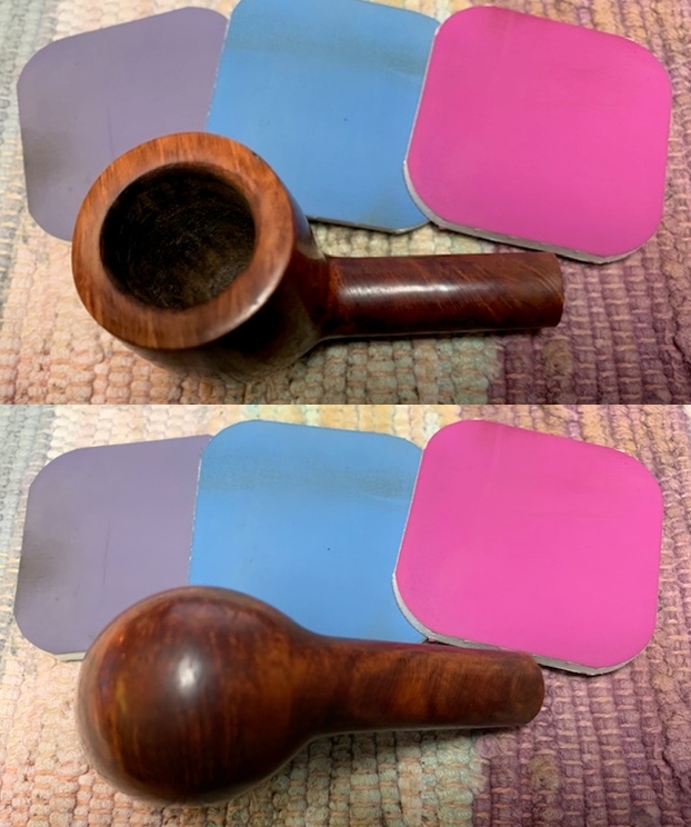 I started my work on the pipe sanding the bowl and rim top with 320-3500 grit sanding pads. I wiped the bowl down after each pad with a damp cloth. The pipe cleaned up very well with the sanding and the grain began to stand out.