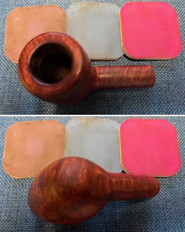 I started my work on the pipe by working over the rim top and the bowl and shank with a 320 grit sanding pad. I wiped the bowl down after sanding pad. The rim top began to take on a shine.