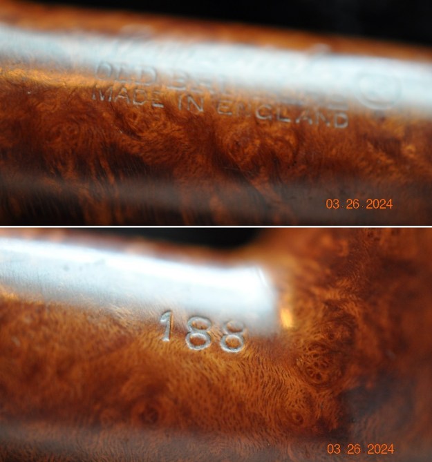 He captured the stamping on the sides of the shank and stem. It reads as noted above and is clear and readable. He also took photos of the Barling cross on the top of the saddle stem. The stem also has a white acrylic spacer that fits between the shank end and the stem face.