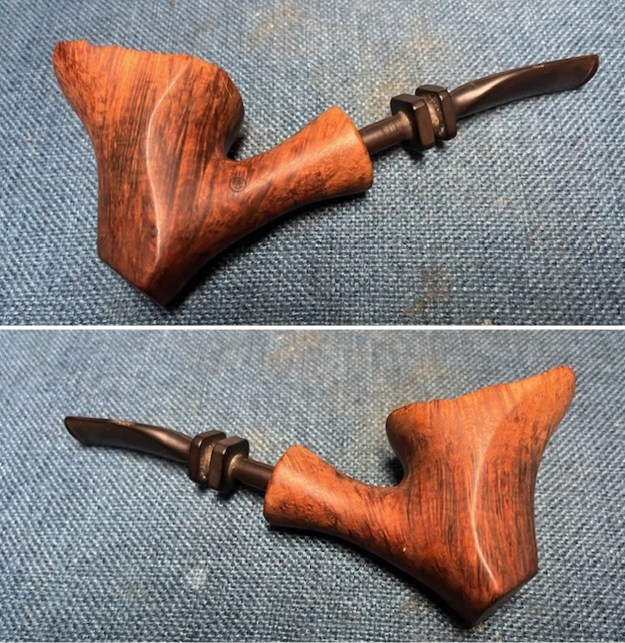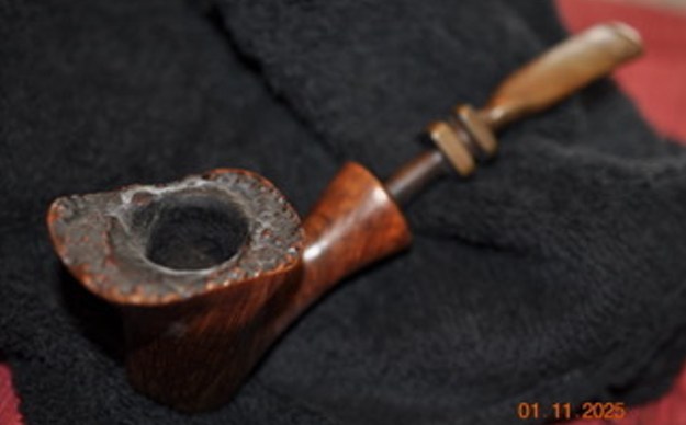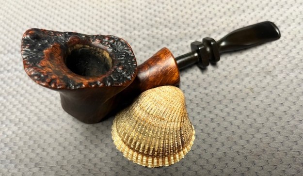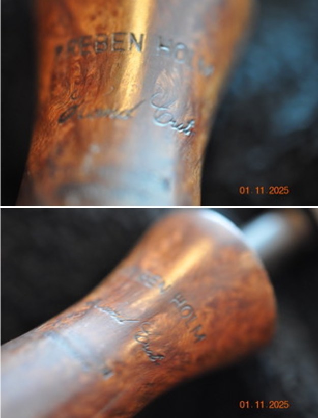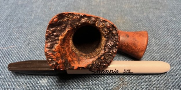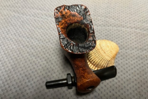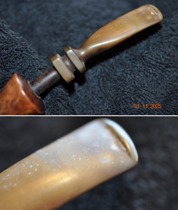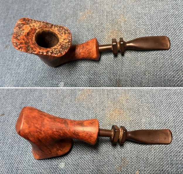 The stamping on the heel of the bowl is clear and readable as noted above. I took a photo of the pipe with the stem removed to give a sense of the proportions of the pipe. It is a real beauty. Interestingly, there was a clean foil inner tube in the tenon.