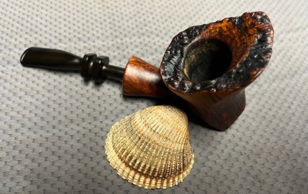 …All carved Castello pipes are graded by the number of K’s that are stamped on each piece and are K-graded by SIZE. 1K is the smallest and fairly rare, 2K is small to medium, with 3K or 4K being the most common and ranges from medium to medium large. Large pieces are stamped “G” for giant and extra-large pieces are stamped “GG” for double giant. In addition to the number of K’s on a carved Sea Rock piece the shape number is almost always added. As a rule a Sea Rock Castello is stained Black, although recently there have been quite a few coming in stained deep brown and still stamped “Sea Rock”. American Logo’d Sea Rocks are all priced the same to the consumer, although most are 2 or 3 K’ed models. G/GG models are charged at a higher price on American pieces and are basically the same as their European counterparts.