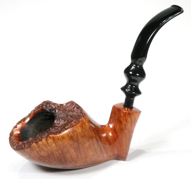 …All carved Castello pipes are graded by the number of K’s that are stamped on each piece and are K-graded by SIZE. 1K is the smallest and fairly rare, 2K is small to medium, with 3K or 4K being the most common and ranges from medium to medium large. Large pieces are stamped “G” for giant and extra-large pieces are stamped “GG” for double giant. In addition to the number of K’s on a carved Sea Rock piece the shape number is almost always added. As a rule a Sea Rock Castello is stained Black, although recently there have been quite a few coming in stained deep brown and still stamped “Sea Rock”. American Logo’d Sea Rocks are all priced the same to the consumer, although most are 2 or 3 K’ed models. G/GG models are charged at a higher price on American pieces and are basically the same as their European counterparts.