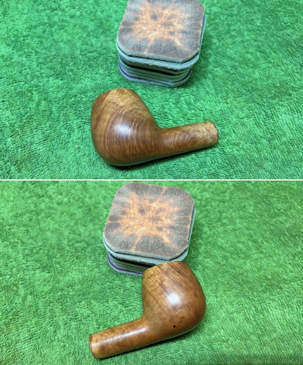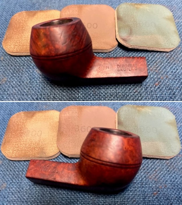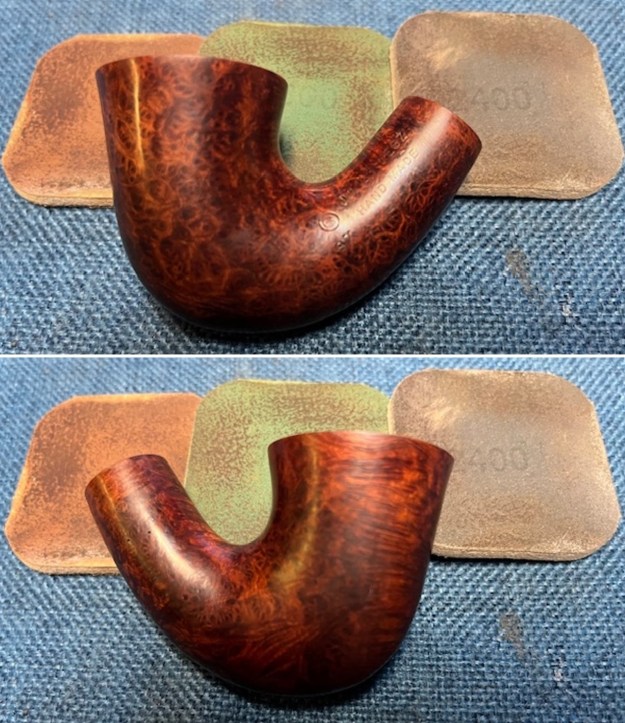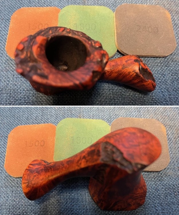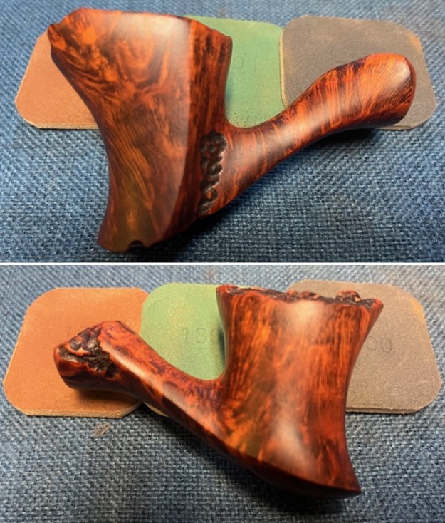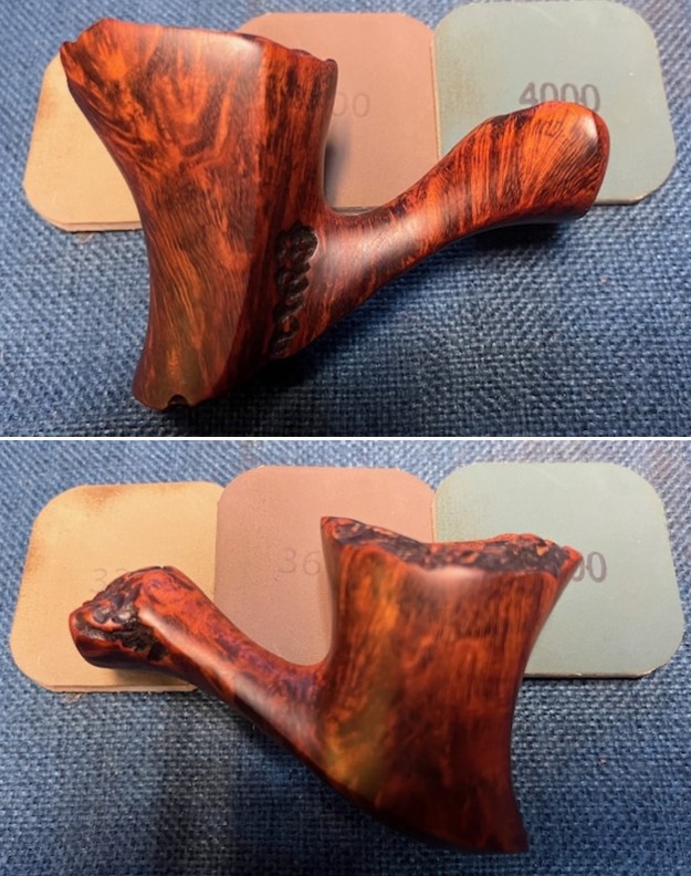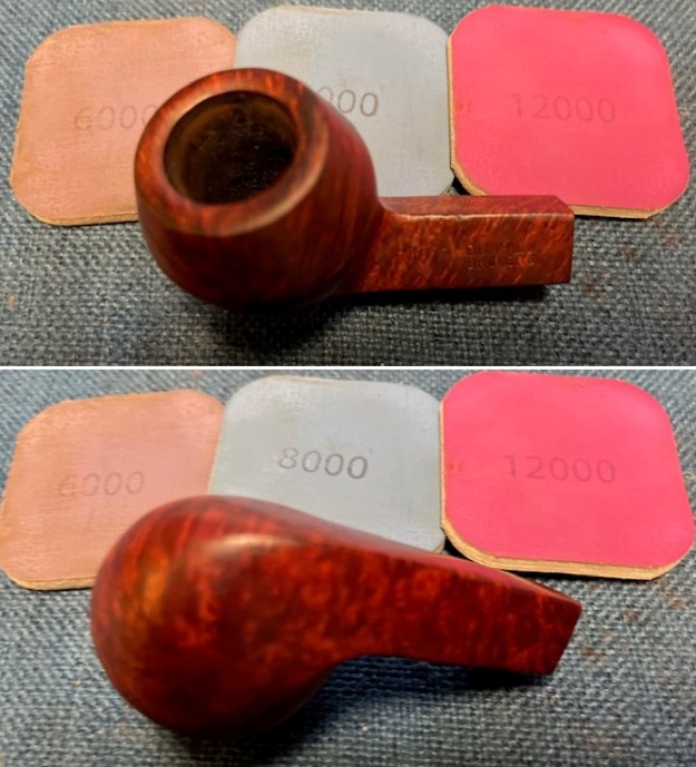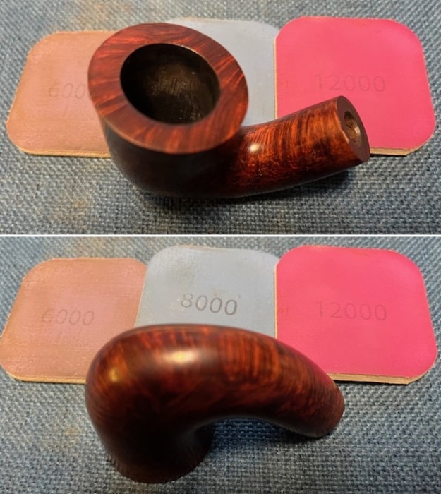 I polished the briar with micromesh sanding pads. I dry sanded it with 1500-12000 grit pads. I wiped the bowl down after each pad with a damp cloth. The bowl began to take on a rich shine and grain was beginning to stand out.