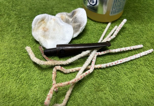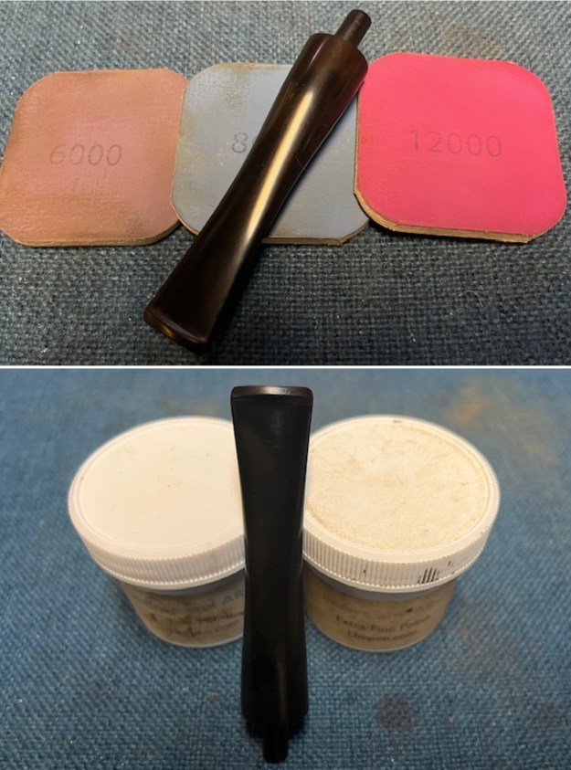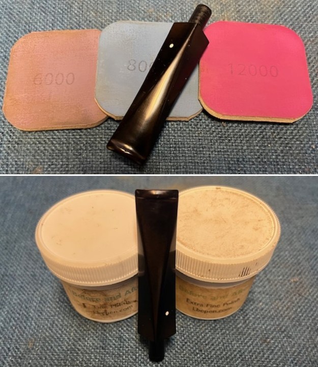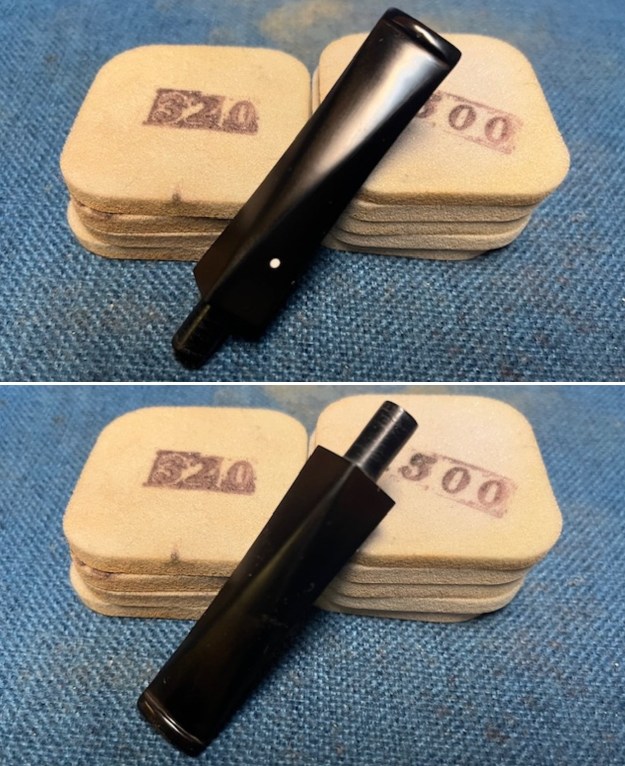 I polished the stem with micromesh sanding pads – dry sanding with 1500-12000 grit pads. I wiped the stem down after each pad with a damp cloth to remove the sanding dust. I used the Before & After Pipe Polish to remove the small minute scratches left in the vulcanite even after the micromesh regimen. I finished by wiping the stem down with a final coat of Obsidian Oil and set it aside to dry.