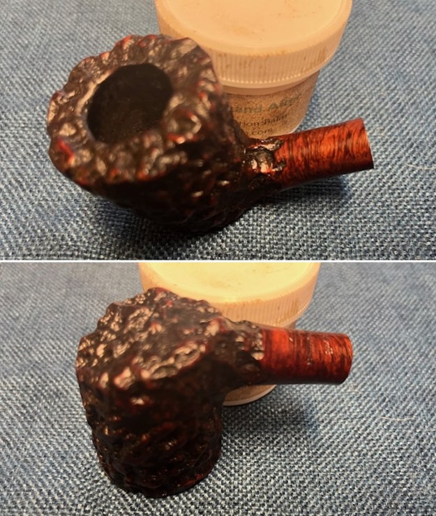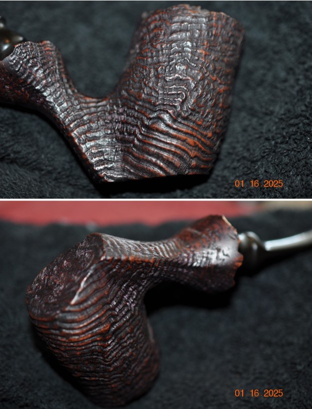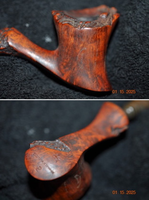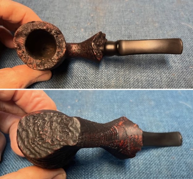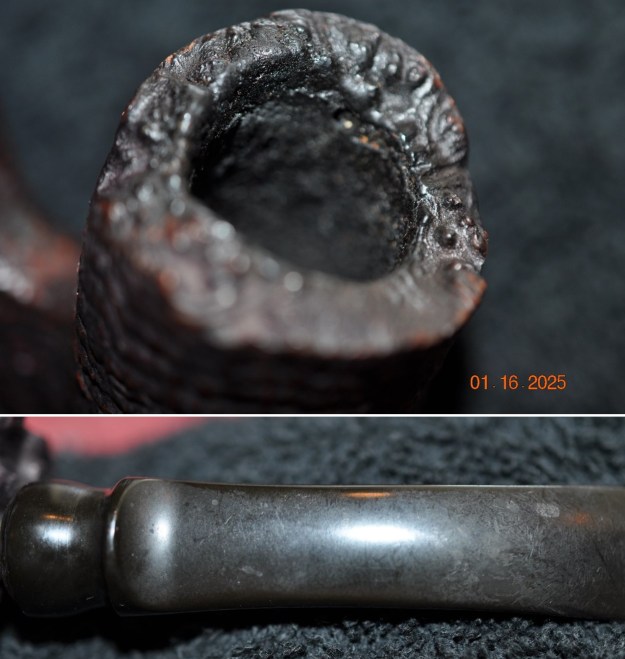 He also took a photo of the bottom of the bowl and shank to show the beautiful grain around the bowl and the ruggedness of the plateau edges. It is very dirty but this is another beautiful pipe.