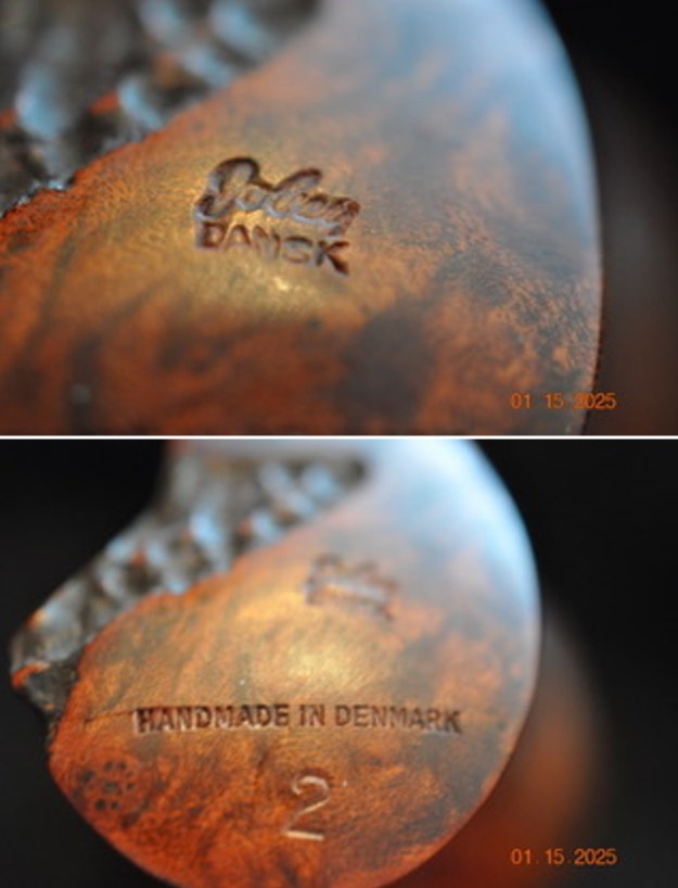 He took a photo of the stamping on the underside of the shank. It is clear and readable as noted above. It appears there is a flaw on the shank end ending between the N and M of Danmark. I will need to check it out further.
