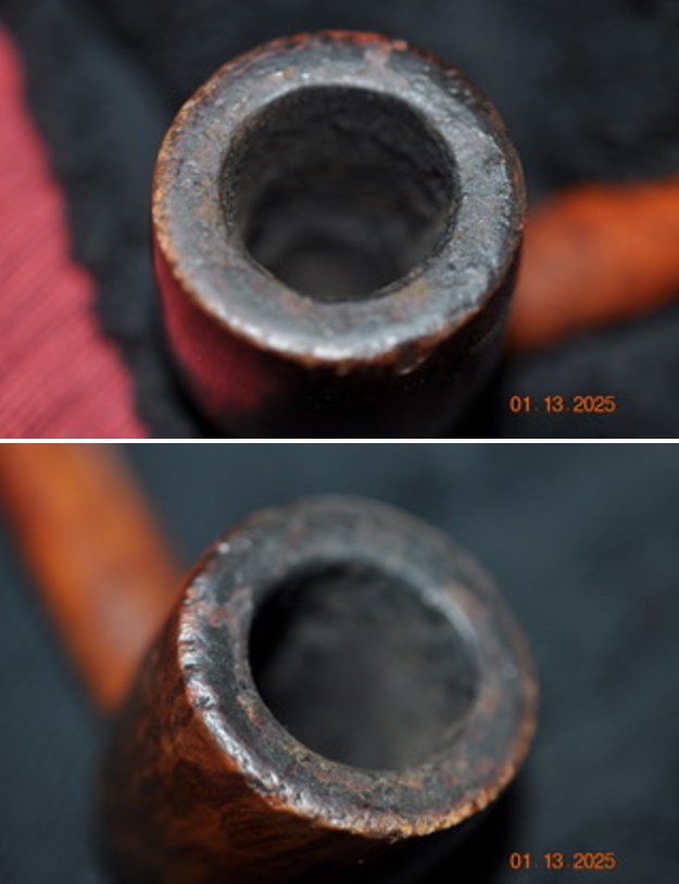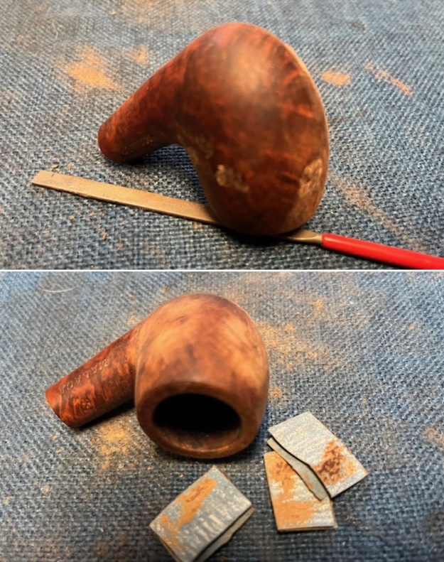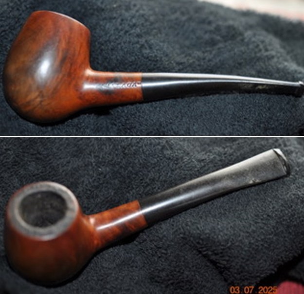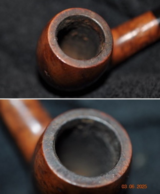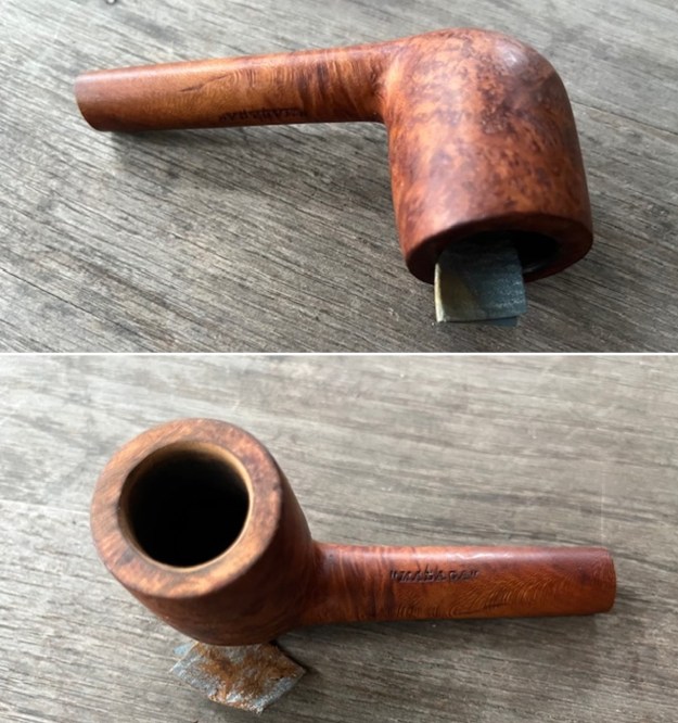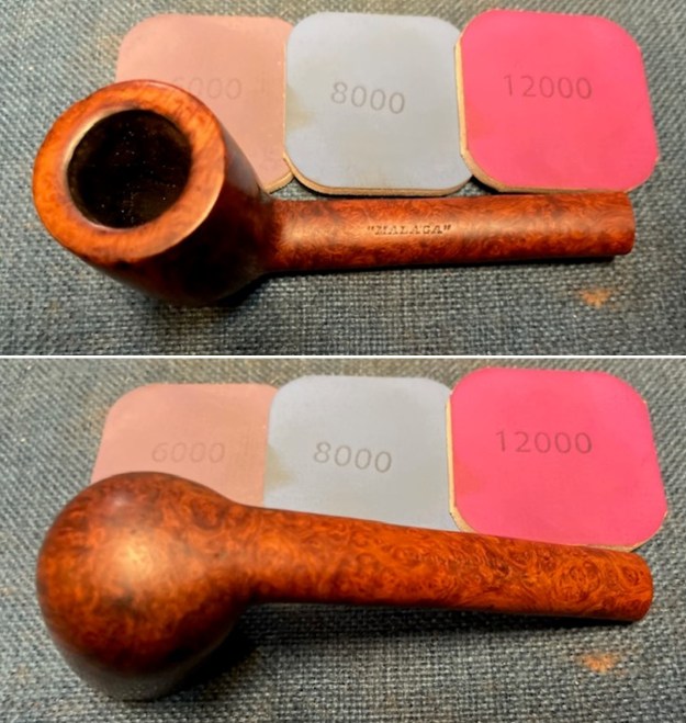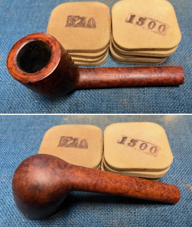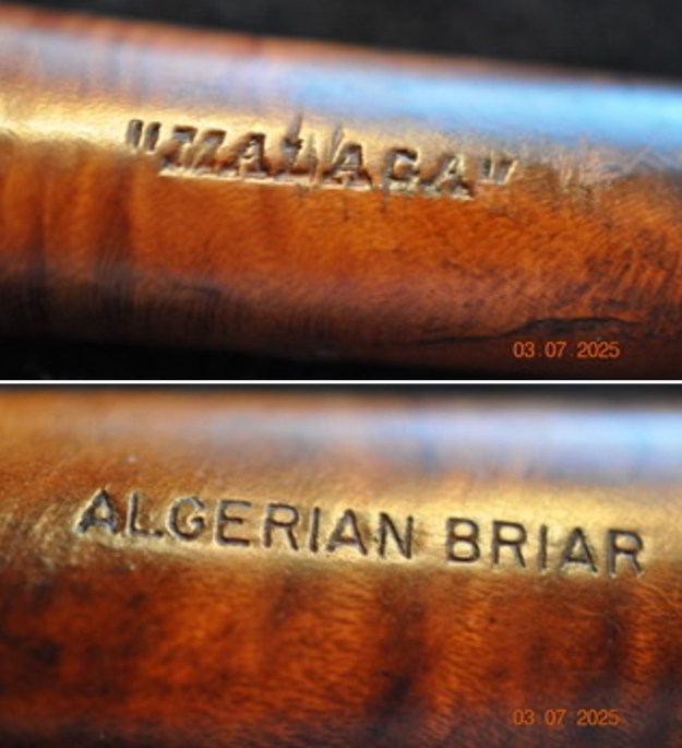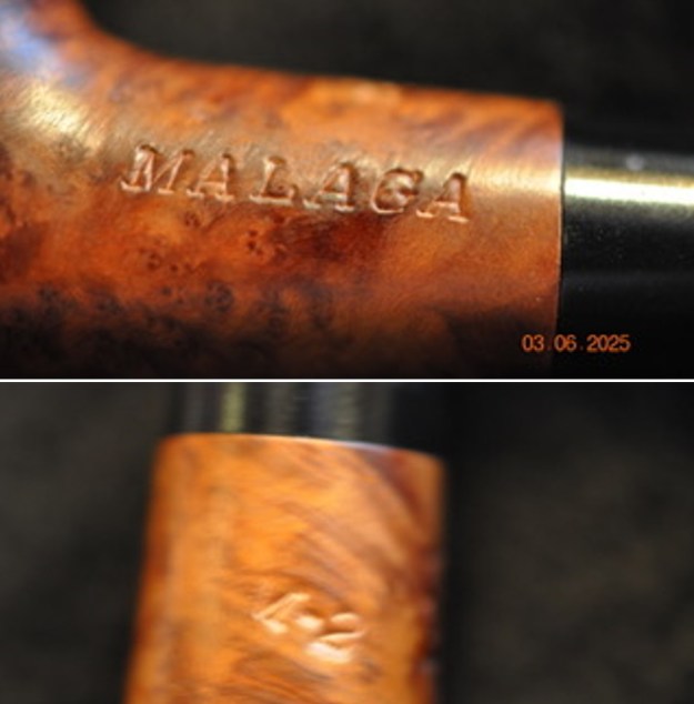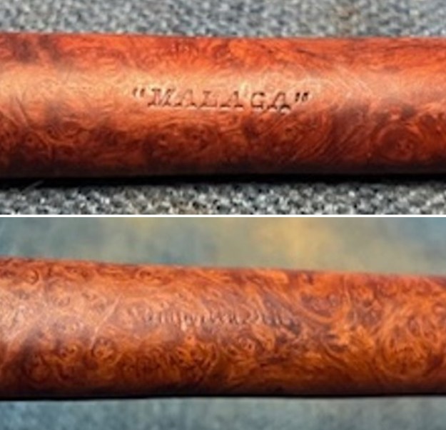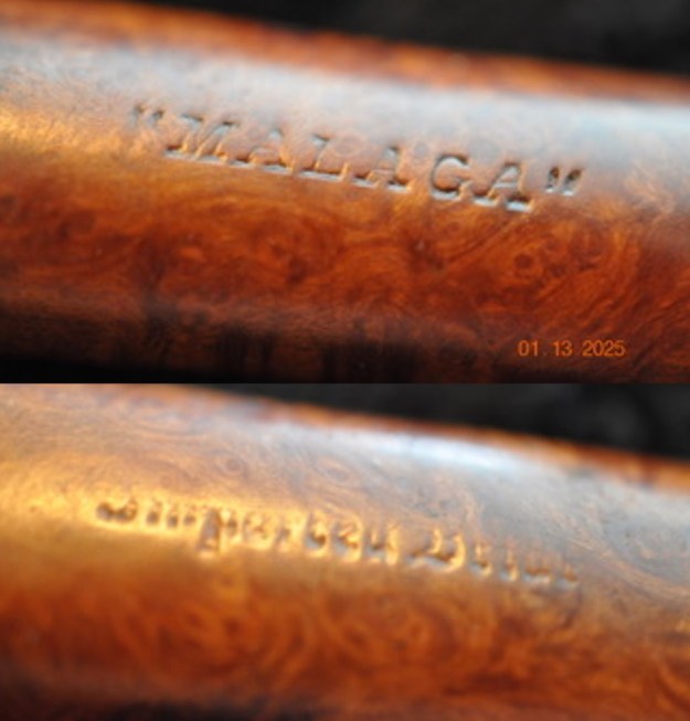 Jeff took a photo to capture the stamping on the left and top side of the shank. The photo shows the stamping “MALAGA” on the left side and M-2 on the top side of the shank. The stamping is very readable under the heavy grime.