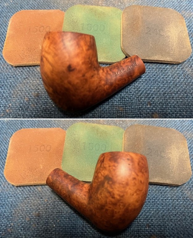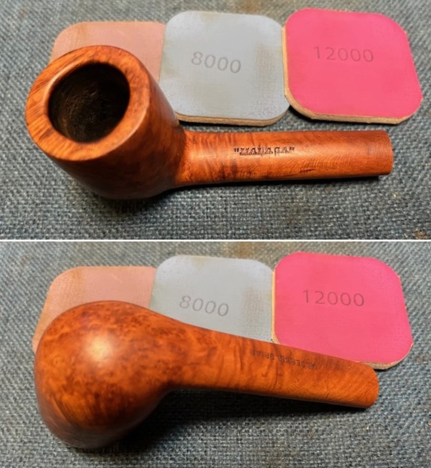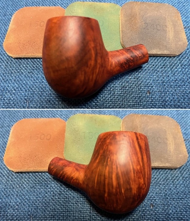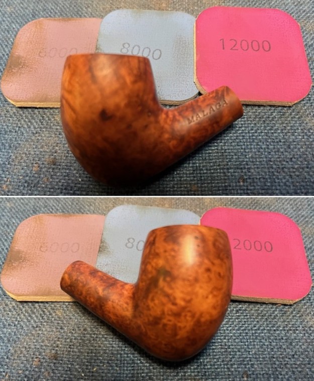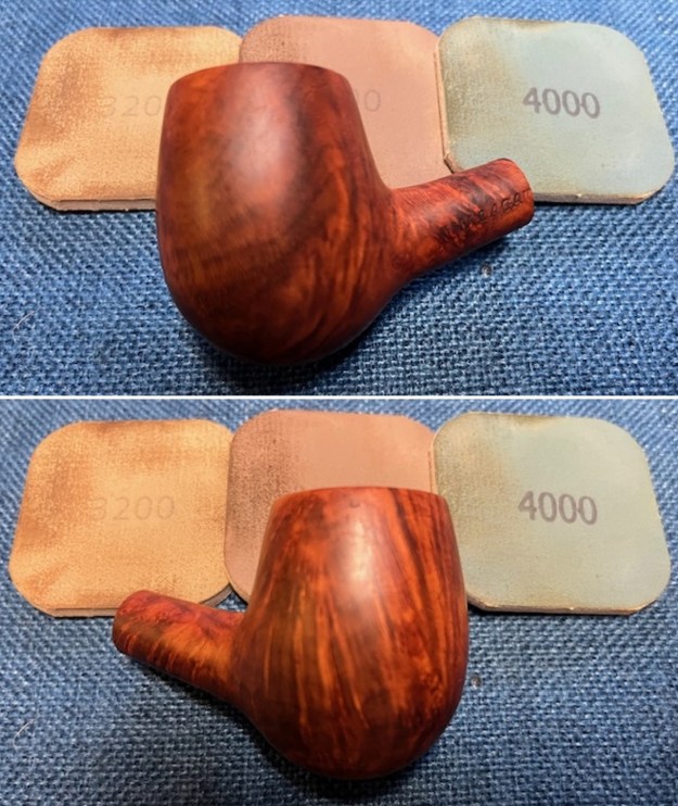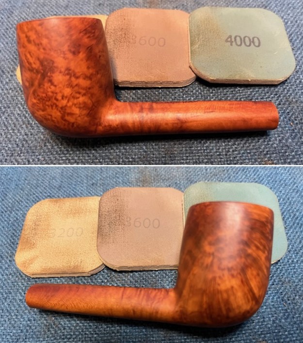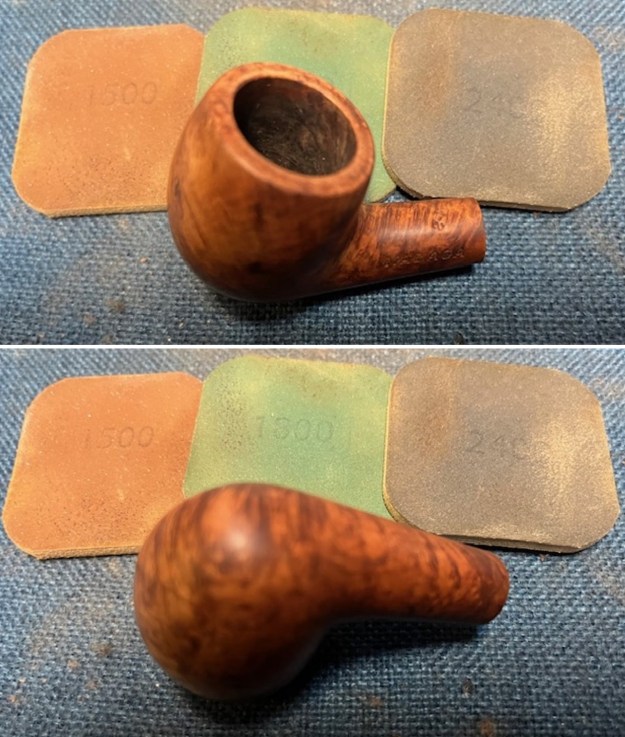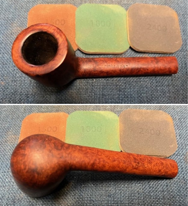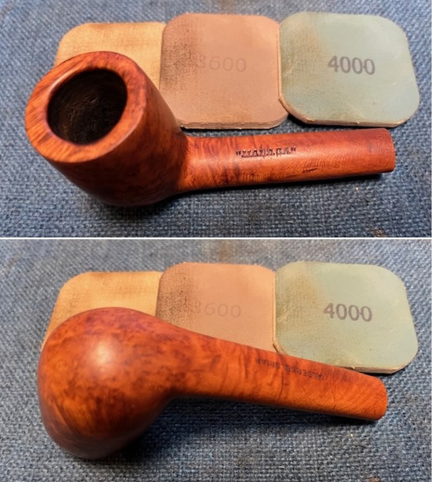 I polished the rim top and the briar with micromesh sanding pads. I dry sanded the bowl with 1500-12000 grit sanding pads. I wiped the bowl down after each pad with a damp cloth to remove the sanding dust.