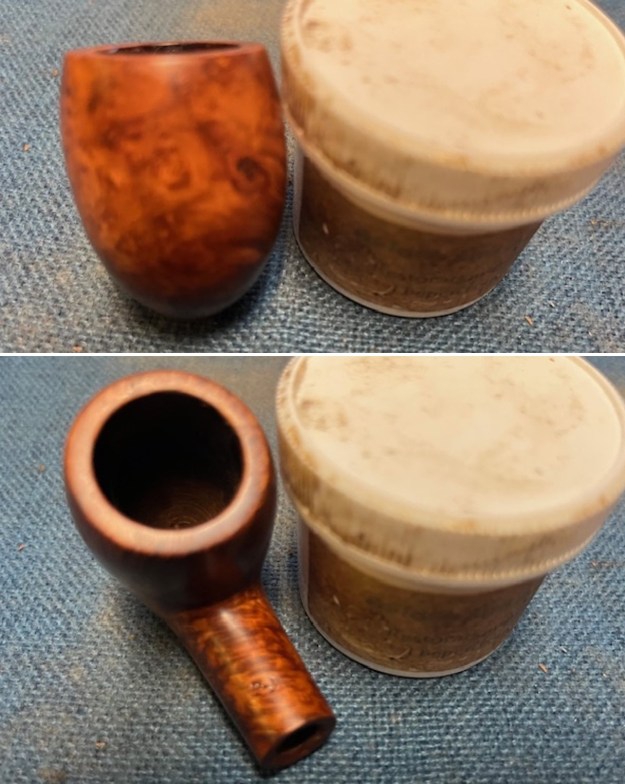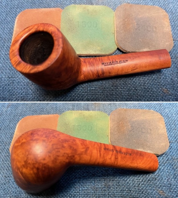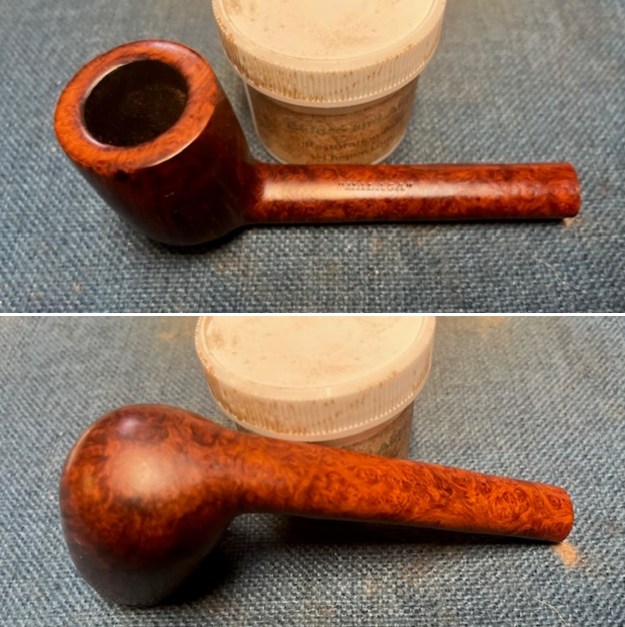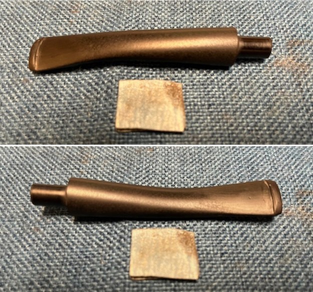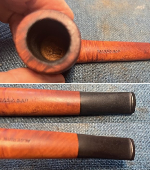 I took a photo of the stamping on the shank to show the condition. The “MALAGA” stamp is far more clear and and readable than my blurry photos show. The M-2 stamp on the top of the shank is also more clear than the photos. I removed the stem from the shank and took a photo to give a sense of how the pipe looked.