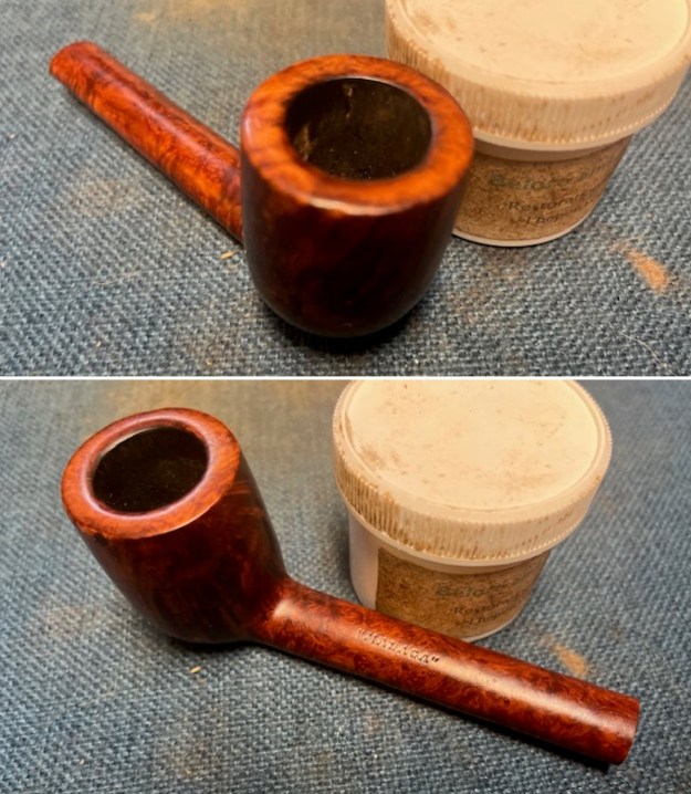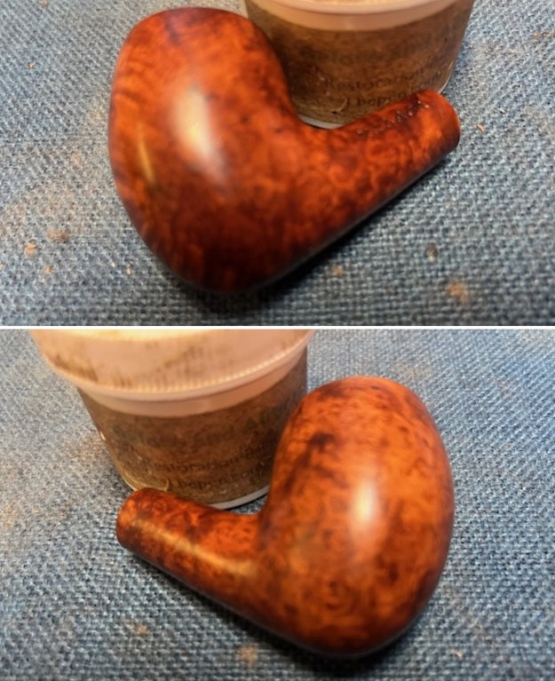 I worked some Before & After Restoration Balm into the surface of the briar with my fingertips to clean, enliven and protect it. I let the balm sit for a little while and then buffed with a cotton cloth to raise the shine. The following photos show the bowl at this point in the restoration process. I am very happy with the results.